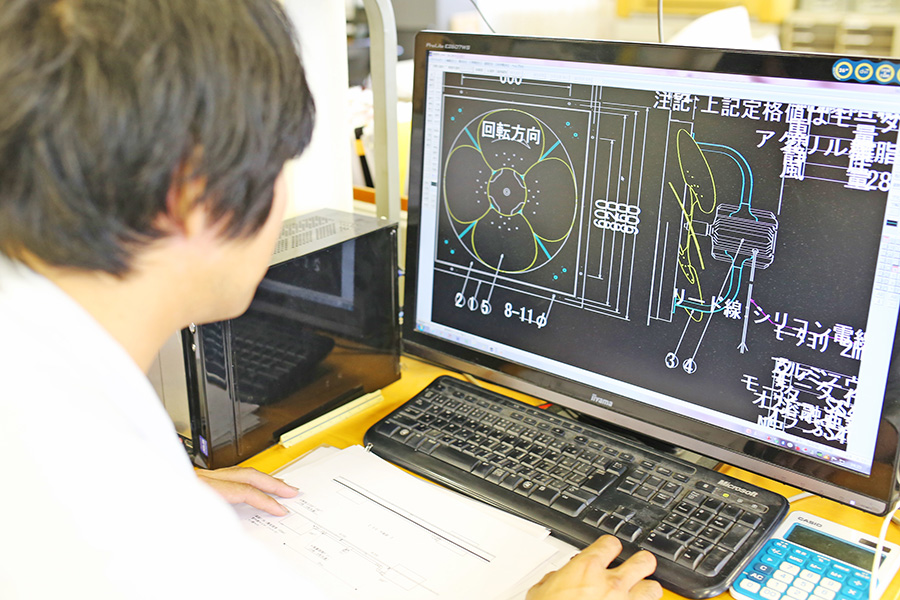 今日、環境に対する意識が高まっています。それは働く環境にも変化をもたらしています。そうした時代への対応から、サンセイではいち早く「局所排気」事業に着手しました。局所排気とは、有害物質を発生源近くに設置したフードから局所的に吸い込み、ダクトを通して排気するシステムで、労働環境を守るために義務づけられているケースもあり、多くの企業で需要が見込まれています。このようなシステム構築を社内で設計することにより、今後の伸張が期待できる社会的なニーズに応えています。